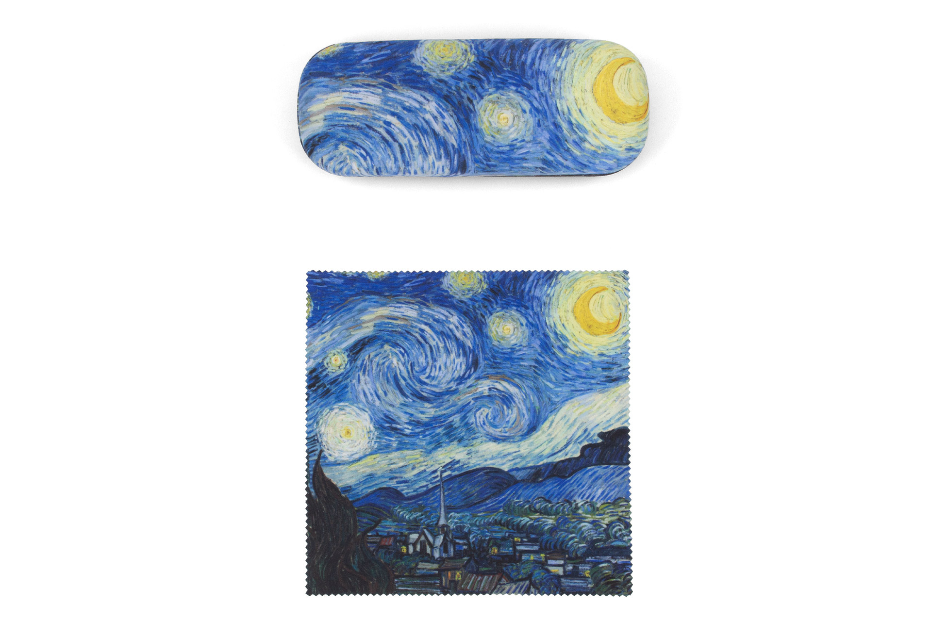 Ein Brillenetui mit beiliegendem Putztuch: mit einem Bild des berühmten Künstlers Vincent van Gogh,: Sternennacht