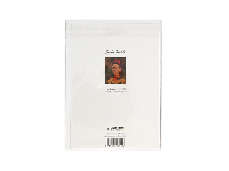 Double card with envelope, Frida Kahlo, Self portrait with monkey and red ribbons