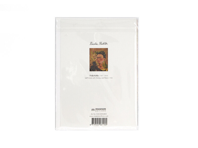 Double card with envelope,Frida Kahlo, Self portrait with monkey and parrot