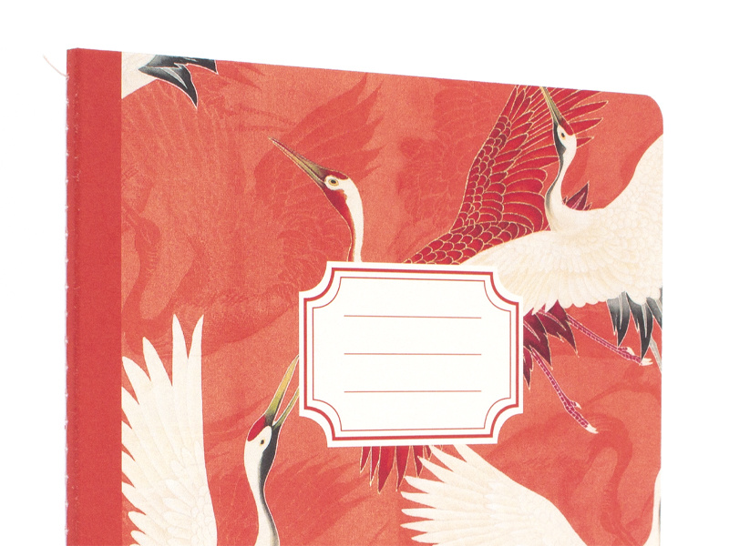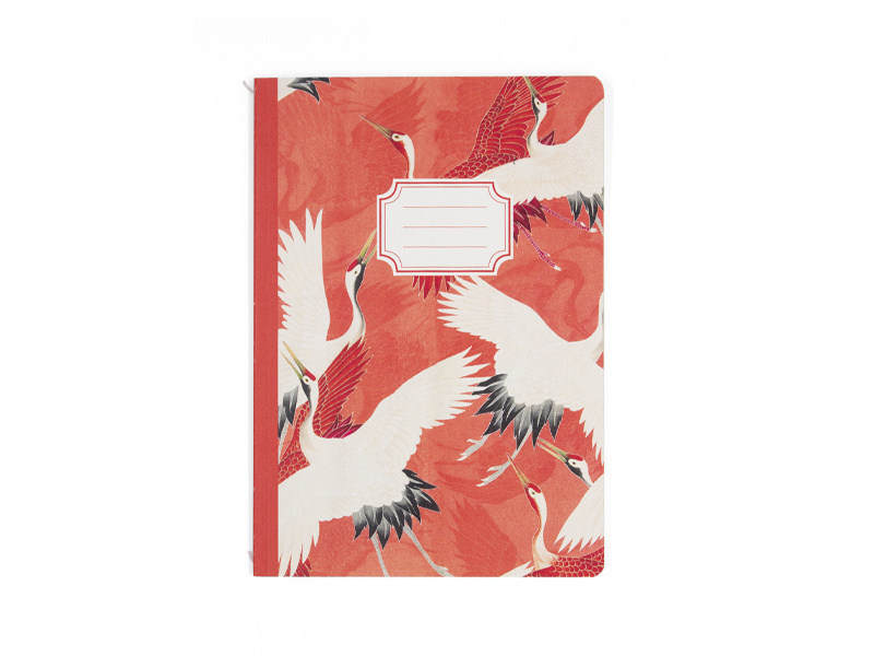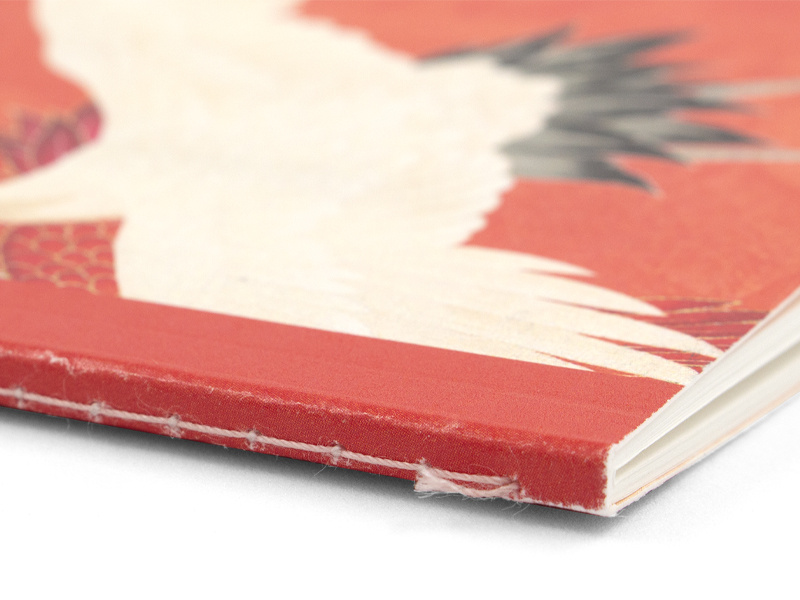 Cuaderno con lomo cosido de algodón, A5, Haori de mujer con grúas blancas y rojas