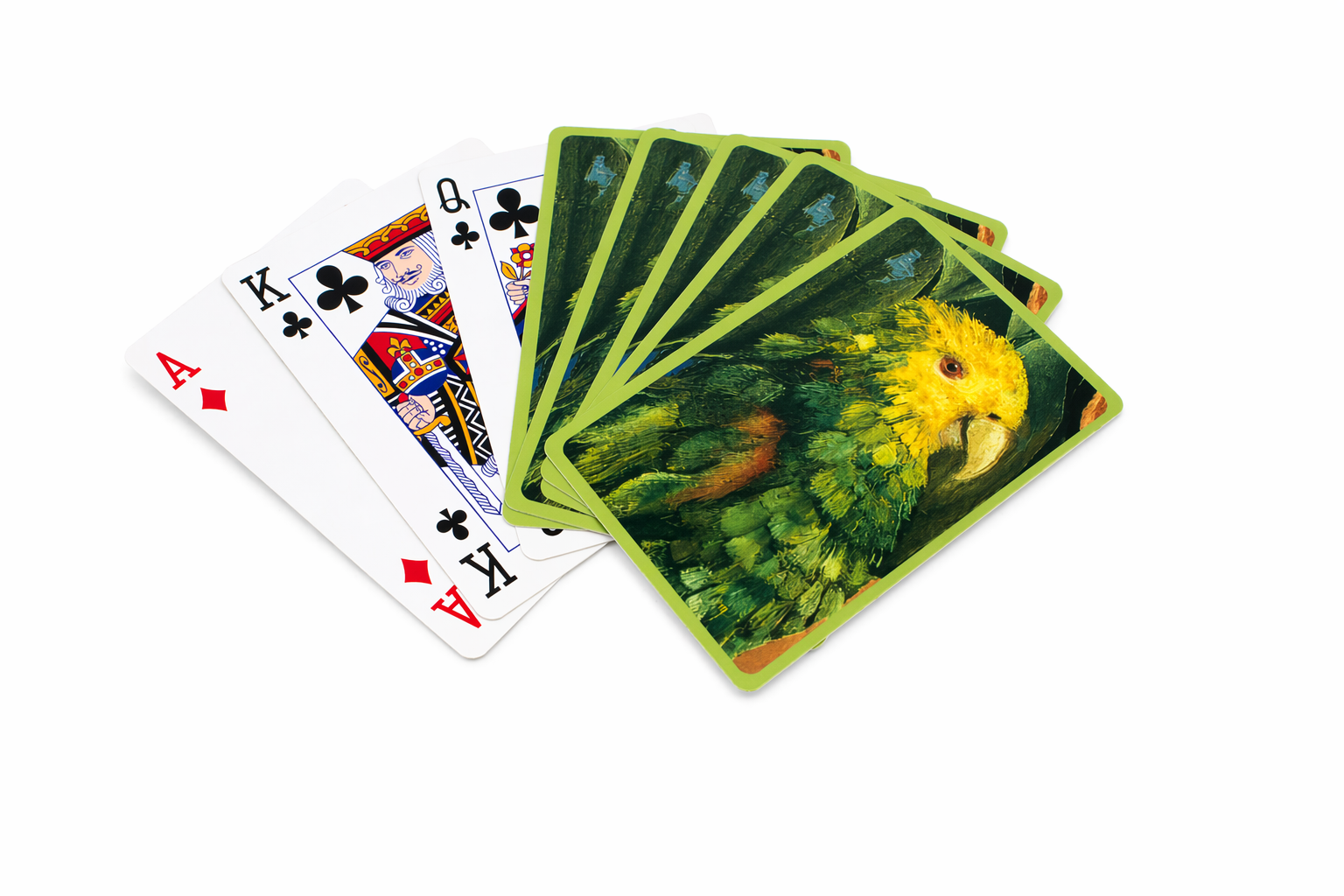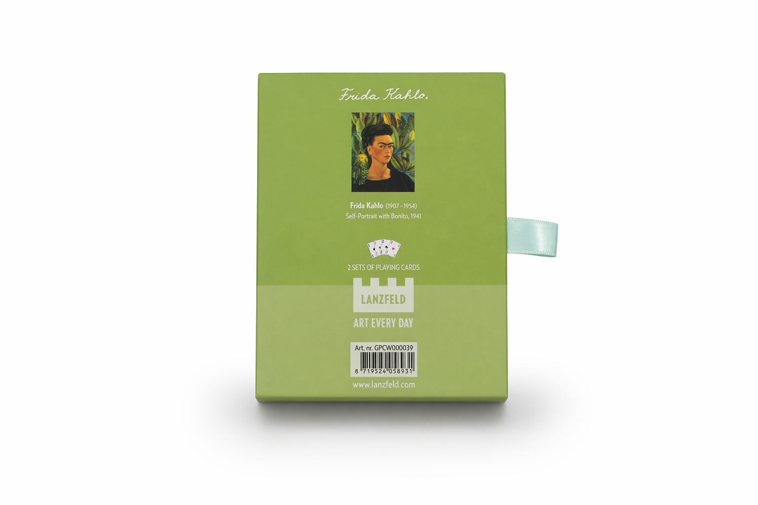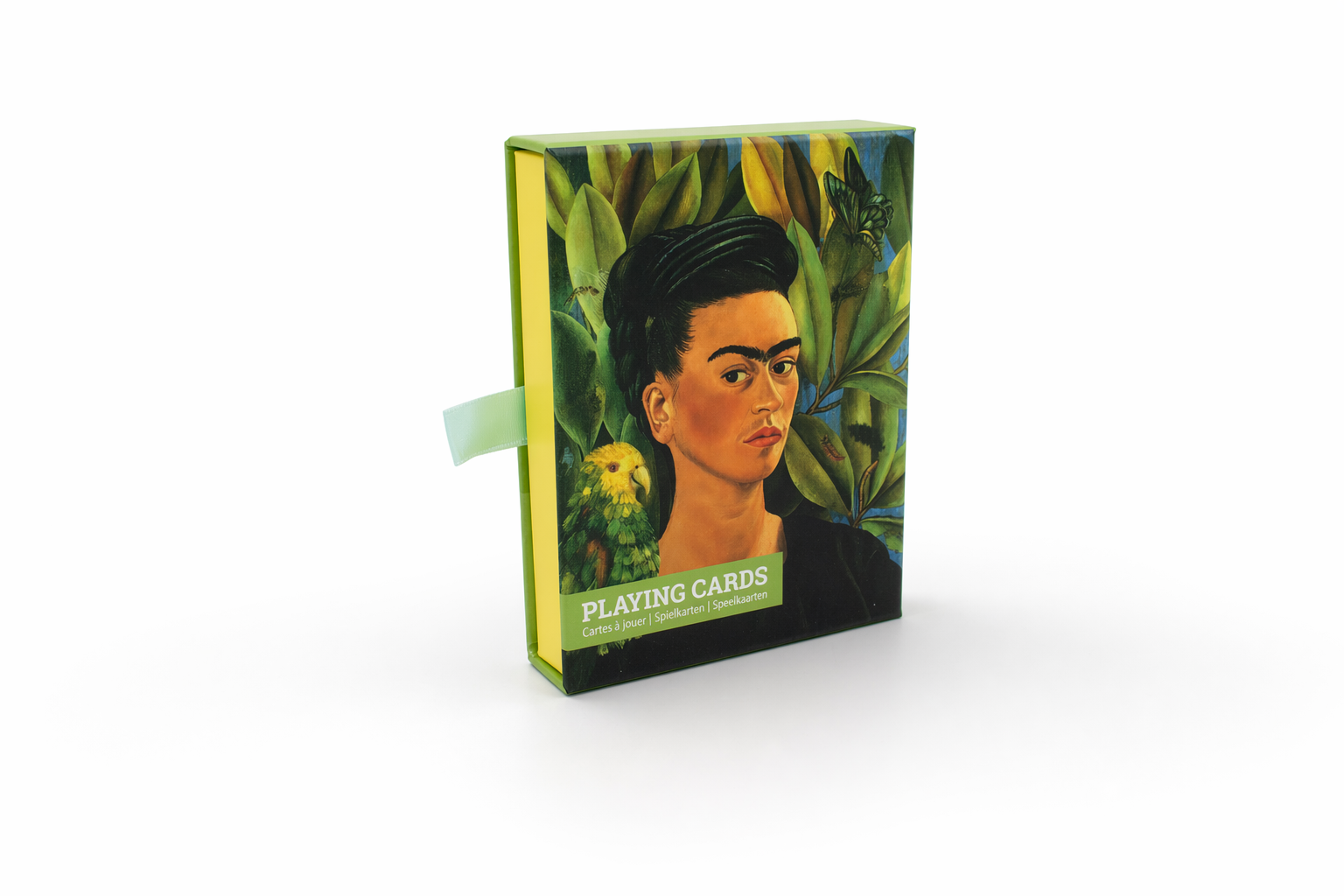Un bonito juego de 2 naipes en una lujosa caja de almacenamiento, con cajón. Las tarjetas están impresas con una obra de arte pintada por el conocido artista Frida Kahlo. 56 cartas por juego