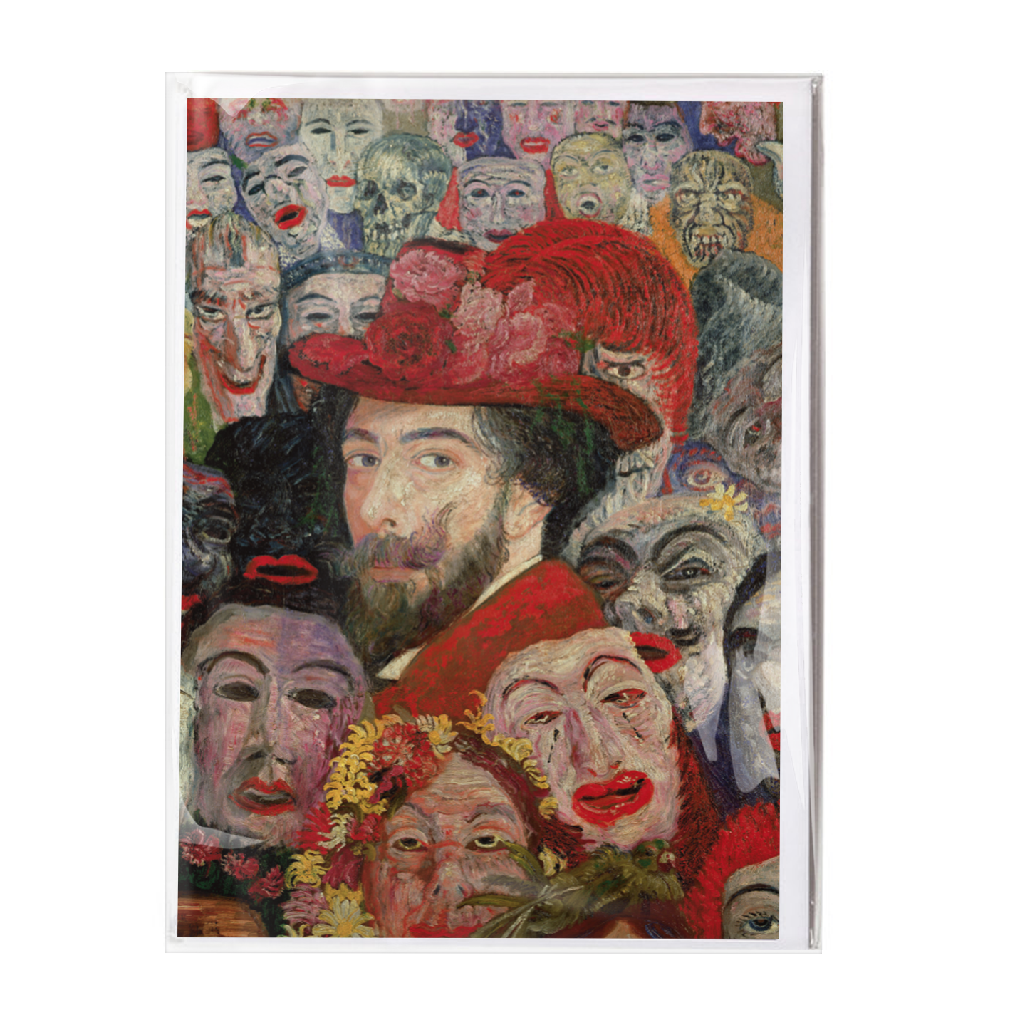 Tarjeta doble con sobre, James Ensor, Autorretrato con máscaras