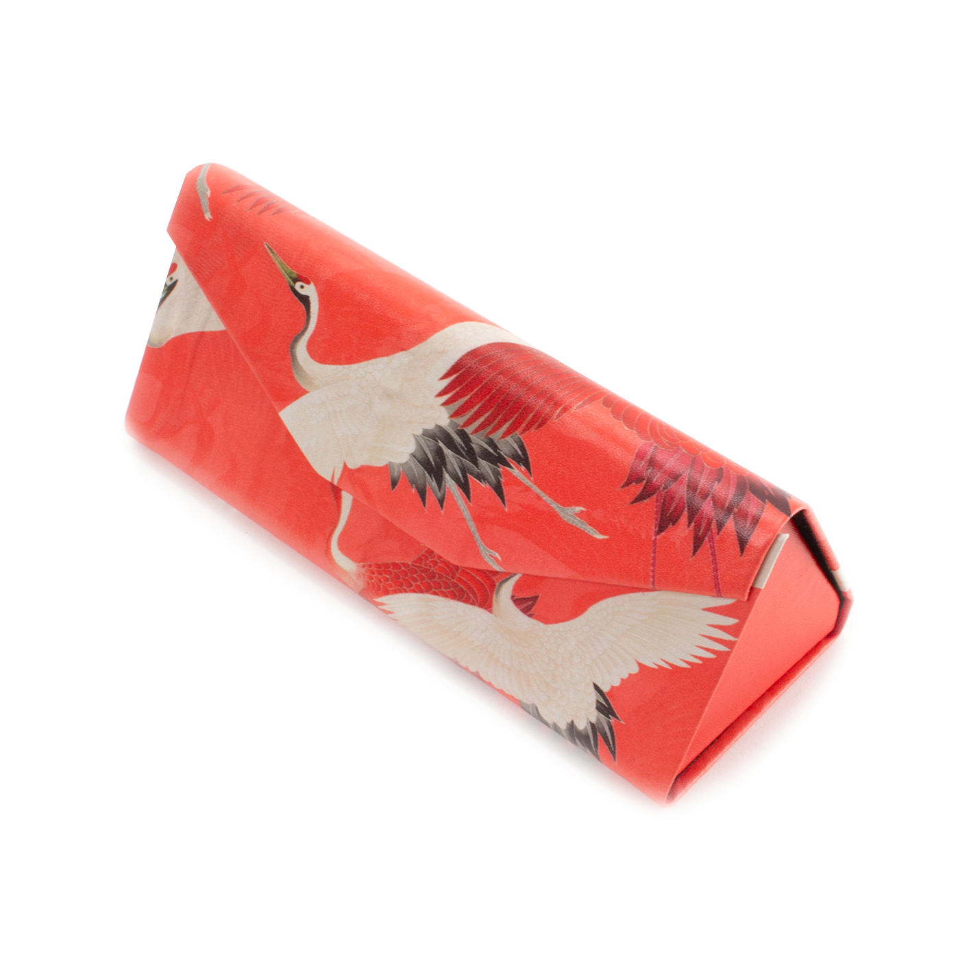 Etui à lunettes pliable + chiffon pour lentilles, Grues blanches et rouges