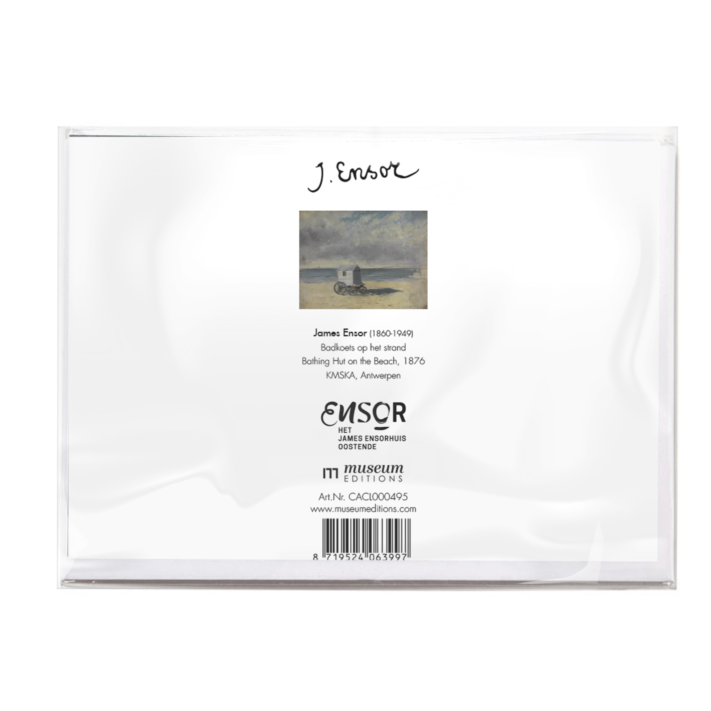 Dubbele kaart met envelop, James Ensor, Badhut op het strand