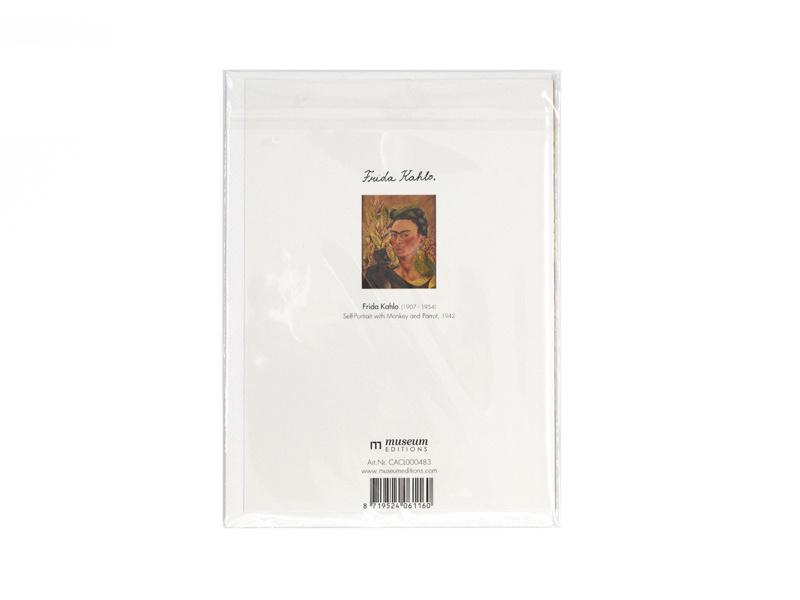 Dubbele kaart met envelop, Frida Kahlo, Zelfportret met aap en papegaai