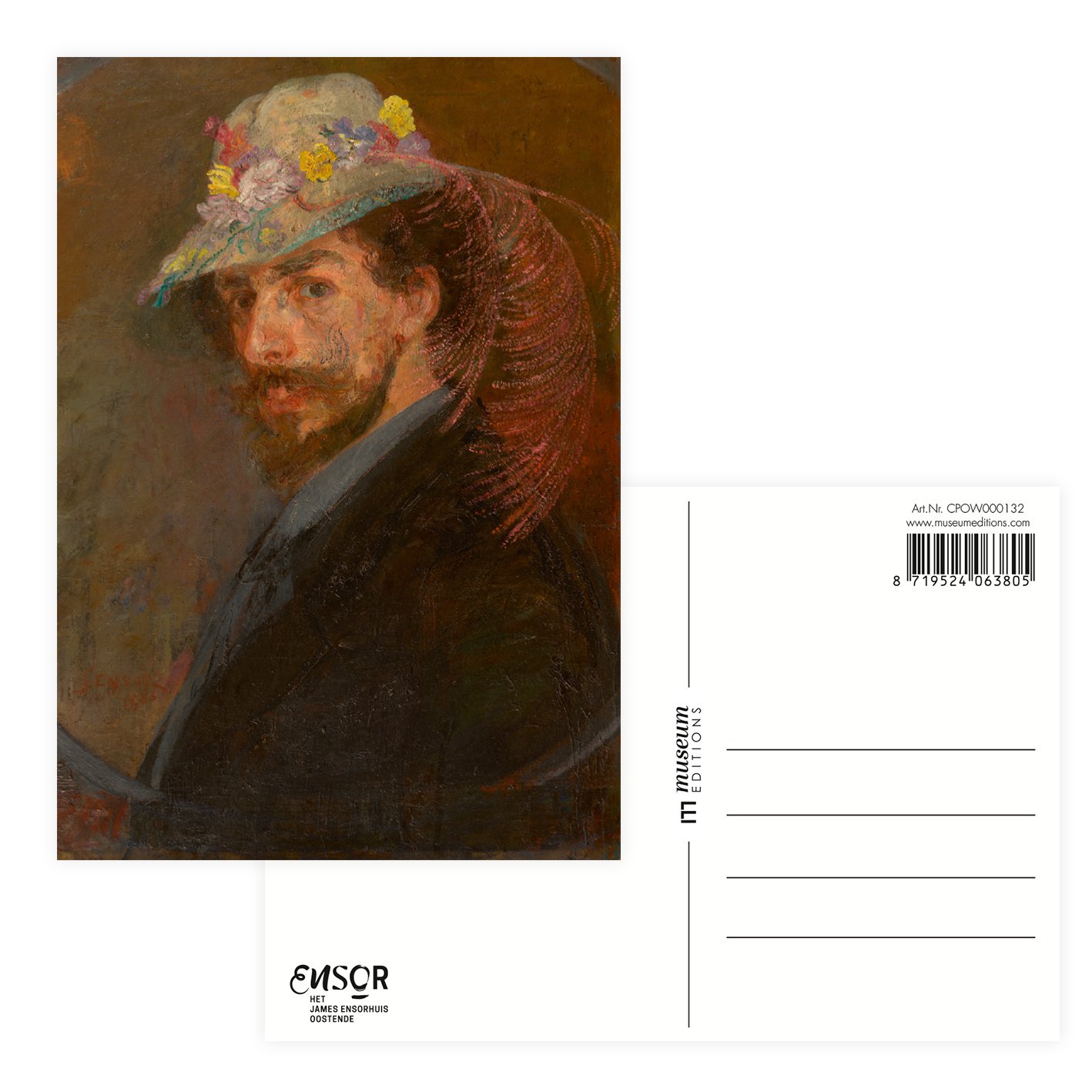 Ansichtkaart, 10 x 15 cm, James Ensor, Zelfportret met bloemen hoed